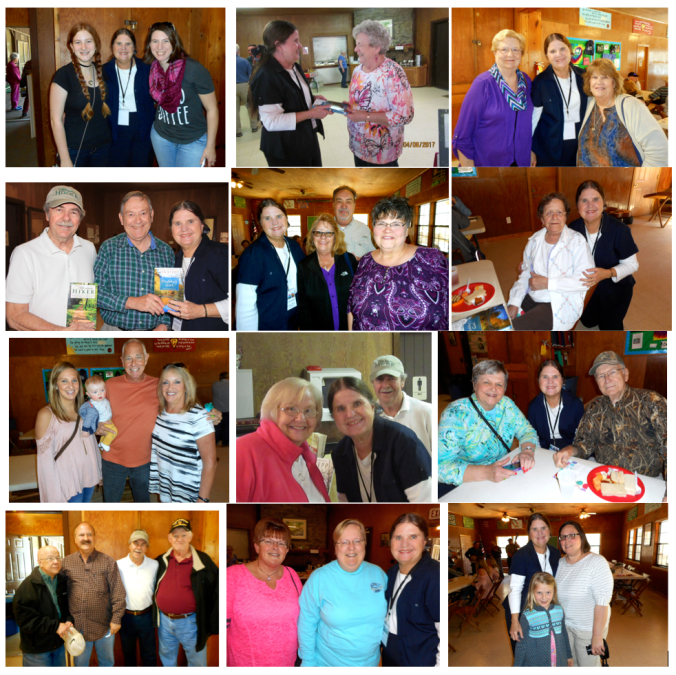 The Launch was held in Wesley Wood’s Tipton Lodge—a perfect spot with its rustic charm and outdoor porches. Many visitors explored the campgrounds enjoying the wildflowers in bloom or walked up the Bob Hayes Trail to a waterfall and back. Not only did friends from around the area come to our Book Launch but friends from other cities and states like Indiana came in for the day as well. It was a joy throughout the Launch to see long-time fans again and to meet new readers and book fans. We are so grateful to all who came, and below are a few memory photos of J.L. and I with many of those who visited with us. Some photos are ours and others were taken by our guests who visited. We wish we could have taken pictures of everyone!