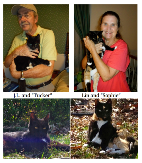 Our home is paid for now—a wonderful feeling—and we still love our neighborhood. We walk its streets and visit with our neighbors. We raised our two children here, watched them ride their bikes on our quiet cul-de-sac, skate, play jump rope and hop scotch, run through the sprinklers, swing and climb on the swing set, create sand neighborhoods and sand cakes in the sand box, and play endless imaginative games outdoors with the neighbor children. My desk sits at the front window, and I don’t see the children out playing in the same way today that ours did. I think they miss a lot. Our kids are gone and grown now but we still have cats. We’ve always had cats … the current ones Tucker and Sophie.