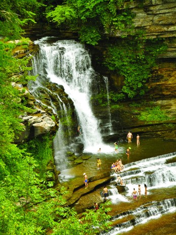 Moving across state we began to hit what we later termed “The Waterfall Parks”—a series of glorious parks with rushing cascades and tumbling falls. Among our favorites were Cummins Falls with its 75 ft curtain of water falling over a rocky bluff, Burgess Falls with its multiple waterfalls spilling over rocky ledges, all viewable from a riverside trail, and Rock Island with a glory of stunning falls scattered all around the park.