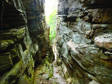 I remember spotting a sign for Rock House Trail as we started into the park. I talked J.L. into hiking down the trail—which looked nondescript at its beginning, hoping we might find the remains of an old rock settlers home. What we found instead were rock house bluffs towering over our heads and a narrow passageway twining along underneath them. This proved to be only the first of many similar incredible trails like this throughout the park, which often began like woodsy pathways, but then led to rocky stairs, bridges, bluffs, and other fun “finds.” In addition, the CCC museum, lake, and picnic areas around the park were scenic—and we learned this was the first park in the southeast to be listed as a dark sky viewing location, making us wish we could stay to look for stars and constellations later that night.