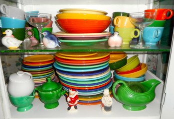 I’m not sure of all the reasons why people collect things but I seem to remember nearly everyone in my family collecting something at one time or another. My mother collected pitchers; she liked pretty colored glassware – and she collected Fiestaware, which I inherited. She also collected buttons because she liked to sew. I remember loving to get out the metal tin boxes filled with the buttons she’d collected to play with them. My father collected tools because he liked to fix and