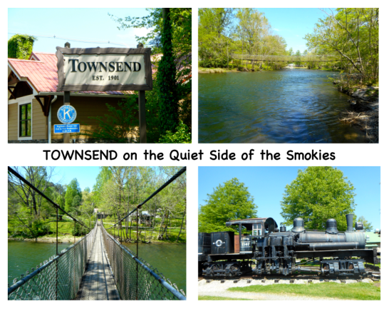 To learn what else happens in the story and to meet all the other interesting characters you’ll need to read the book. It will quickly wrap you in its rich, heart-warming, keep-you-guessing story … while taking you to visit in the charming town of Townsend near the Smoky Mountains. You’ll enjoy book scenes along the Little River, as in the photo above, a visit to the Little River Railroad Museum, and you will smile at the many sweet scenes on the swinging bridge behind Grace Conley’s Mimosa Inn.