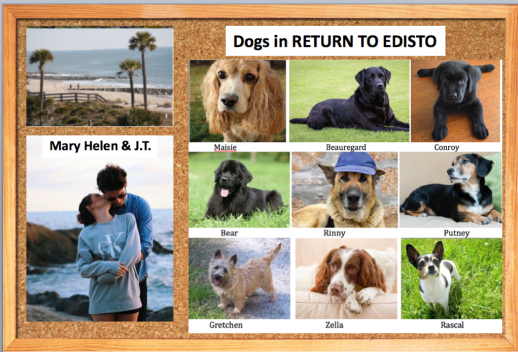 The story of RETURN TO EDISTO could be read as a stand-alone novel but it is much more fun to read it as a sequel—since many of the characters from the past book wind their way into this new story, too…. You will meet many old friends you’ll remember from the first book and many new characters, too … including quite a few dogs!… While working on RETURN TO EDISTO, I posted pictures of these story dogs on Facebook and asked my readers to help me name them—and many of those names found their way into the story…. I often find readers give me great ideas that I can use in my books.