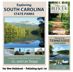 Due to the warm reception to this book and encouraged by bookstores and fans while visiting in South Carolina, we began work on a second state park guidebook set in the Palmetto State. Completing our visits to all the parks last year, this new guide book, EXPLORING SOUTH CAROLINA STATE PARKS, has just published along with my latest fiction titles. The book has directions to each park, descriptions of each, and over 700 color photos throughout. I would encourage you to buy this book in print versus eBook, too, as the print books keep the beautiful original book format, making them so much more appealing.