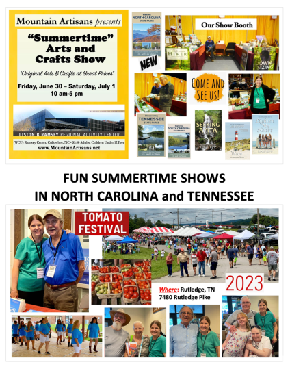 As the summertime kicks in, with its warm weather and with children out of school, many festivals are held outside all around the U.S. We can attend only festivals where there is some “indoor” space since we have a multi-book display to protect from the weather. This year we traveled to the Mountain Artisans Summertime Arts and Crafts Show in Cullowhee, North Carolina, for a two-day show and then in July to the annual Grainger County Tomato Festival in Rutledge, Tennessee. We’ve been attending the Tomato Festival for over twelve years now … and it is one that we always enjoy. At the Tomato Festival are vendors, entertainment, artisans, crafters, and vegetable farmers from around the Grainger County area with their wonderful Grainger County Tomatoes the festival is named for.