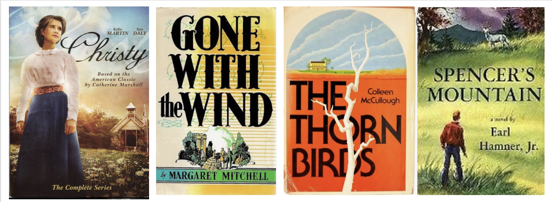 As a young woman I especially loved historical sagas, romances, and mysteries and those are still the genres I love most to read. I can remember certain books I especially liked: The Thorn Birds by Colleen McCullough, Gone with the Wind by Margaret Mitchell, Hawaii by James Michener, Cheaper by the Dozen by Frank B. Gilbreth, Christy by Catherine Marshall, Mrs. Mike by Benedict Freedman, The Fountainhead by Ayn Rand, and Spencer’s Mountain by Earl Hamner. These books pop up in my memory without prompts and I can still remember the stories in them and the characters.