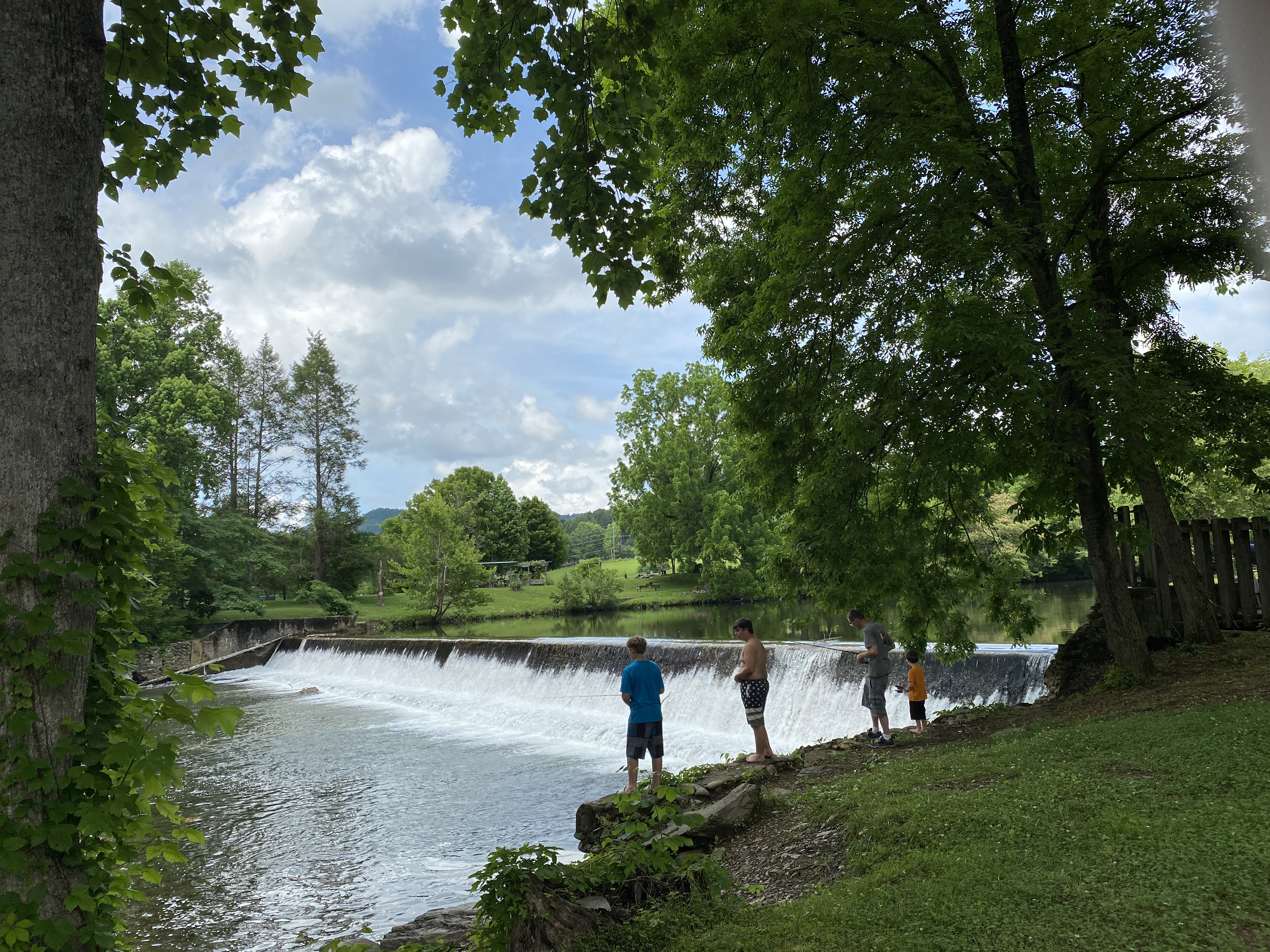 The idea for this book began when J.L. and I were driving through the Townsend area after a hike in the nearby Smoky Mountains. We stopped at a local drive-in on the highway that we love, called the Burger Master, to get a dip cone as a treat. As we left and drove up the main highway afterward, I noticed for the first time a mill dam spreading all the way across the Little River. I was already familiar with the Peery’s Mill dam closer to Maryville, but for some reason I’d never noticed this smaller one. Where there’s a mill dam, there was usually a mill at one time as mill dams were created to divert a swift stream of water into the mill to power it. My curiosity was up now, and J.L. and I stopped to walk closer to look at the spill of water cascading over the dam in a long waterfall. It didn’t take my active imagination long to imagine that a scenic old mill might have sat right across the river at one time long ago.