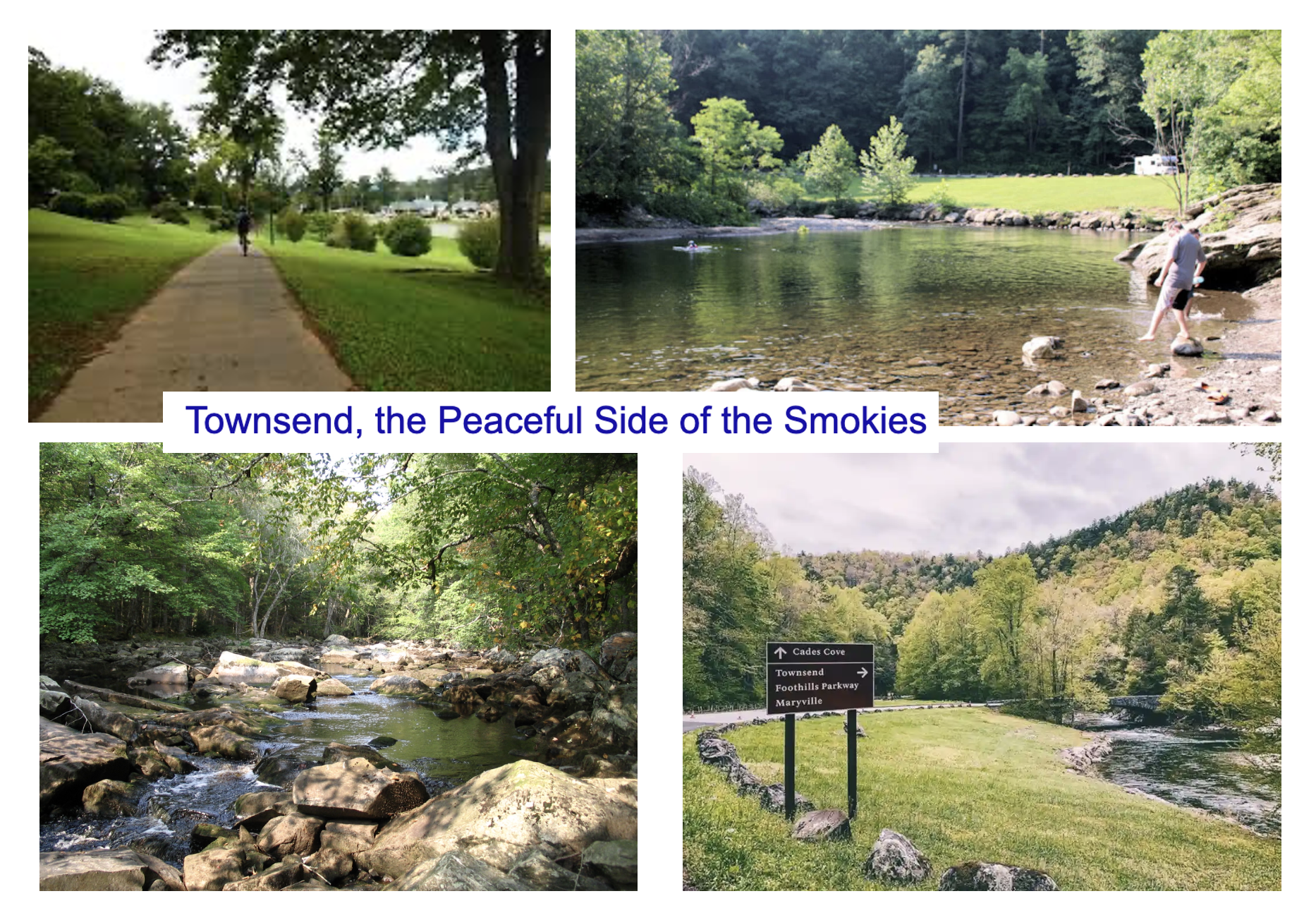 Jesse and Ella both loved the outdoors, hiking, biking, and tubing on the Little River, walking the trails and side roads around Townsend and around the Helton farm in Walland. J.L. and I hiked a lot of trails around the nearby Smokies that might find a place into the story … enjoying the Schoolhouse Gap Trail off Laurel Creek Road and re-hiking the Middle Prong Trail, another favorite not far from Townsend. We also walked long sections of the Townsend bike trail that runs from one end of town to the other, and we enjoyed discovering several new places we hadn’t known about before. I had the additional pleasure of bringing back old businesses and characters from my past Townsend books, TELL ME ABOUT ORCHARD HOLLOW and DOWN BY THE RIVER, into this new story. I seldom put “real” people I know into my books, but in this book I made an exception, also bringing in lots of crafter friends to be vendors at Mill Day, and letting “real” locals I know make cameo appearances in their shops and businesses.